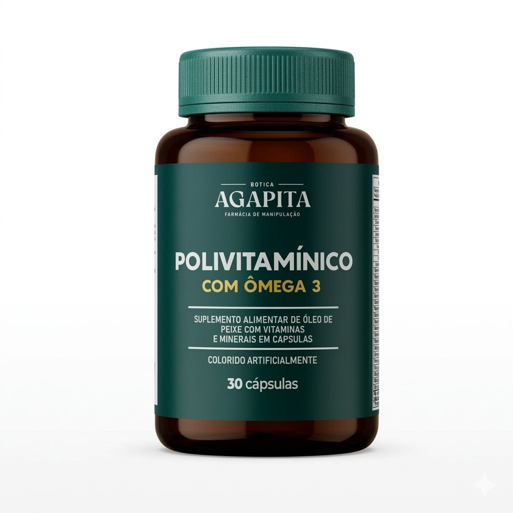 O Polivitamínico com Ômega 3 da Botica Agapita é uma formulação de amplo espectro que combina 22 nutrientes essenciais (vitaminas e minerais) à pureza do óleo de peixe. Esta sinergia foi desenhada para preencher lacunas nutricionais da dieta moderna, oferecendo em uma única cápsula o suporte necessário para o funcionamento metabólico, imunológico e cognitivo.]